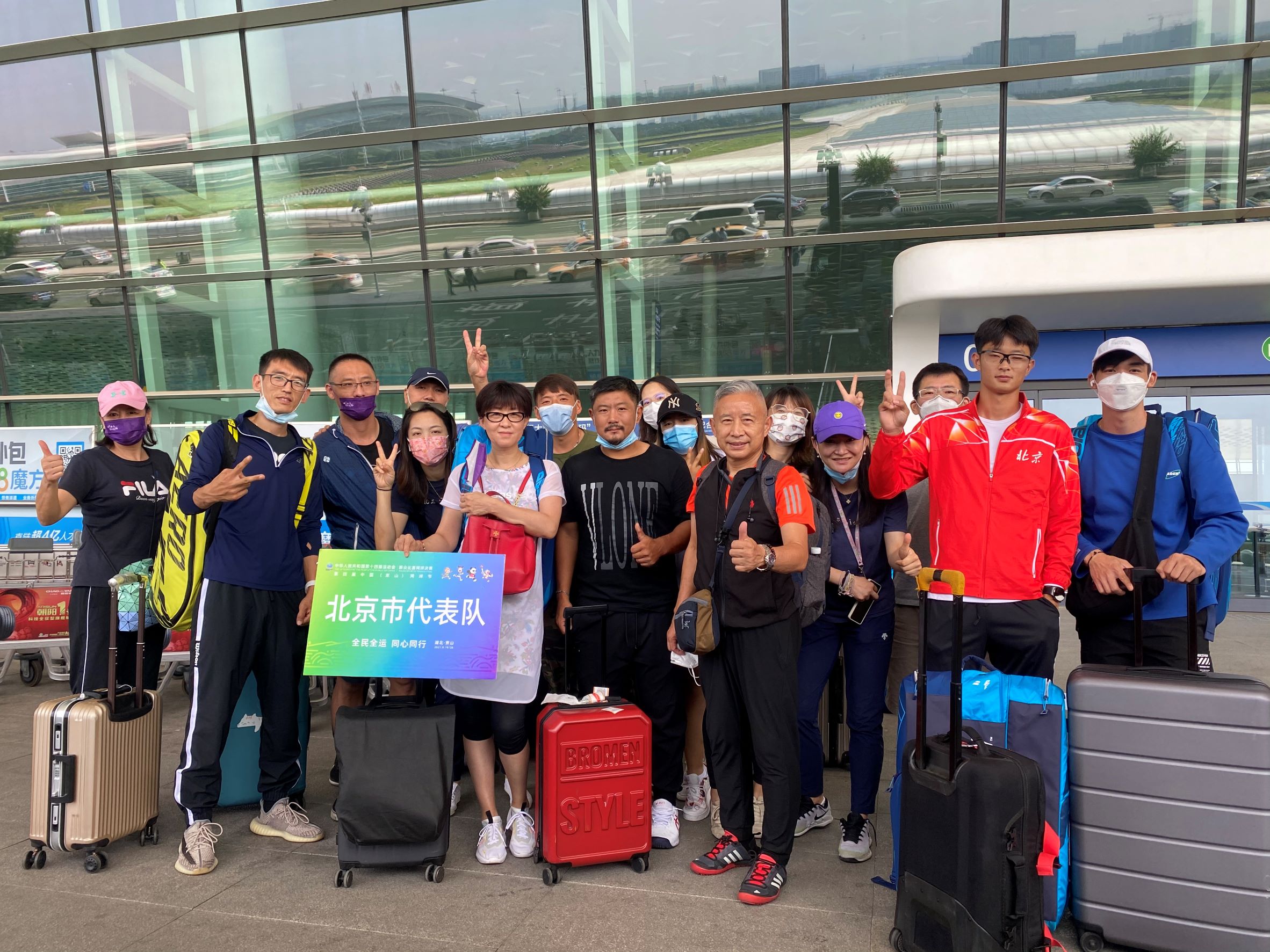 9月16日,北京代表队一行顺利抵达湖北省京山市,参加第十四届全国运动会群众比赛网球决赛,北京队派出男女各6名队员,参加全部团体、单打和双打项目。